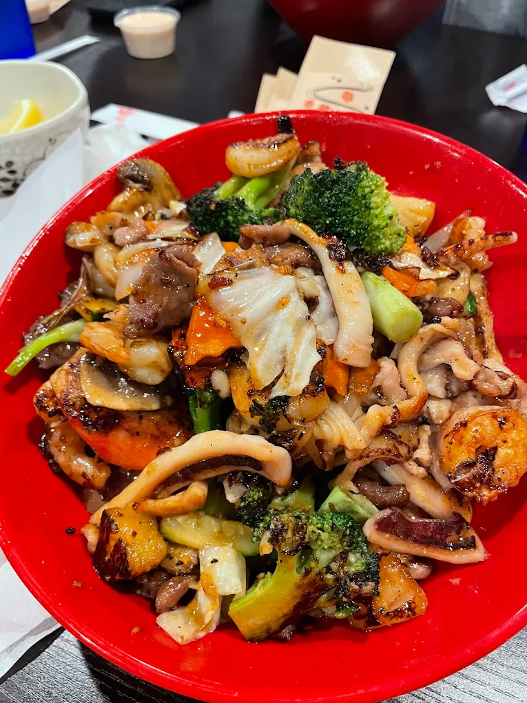 "Have been three times with varying groups of my family, 3-6 people, for dinner. The food has been excellent each time. My family has enjoyed creating their own bowls for stir fry with tons of choices of meats, vegetables, rice, noodles, sauces and spices. I have had the house specials. The sushi is prepared to order and has been very tasty in the varieties we have chosen. Nice, clean atmosphere but not particularly memorable. Friendly staff. Large amount of seating."
